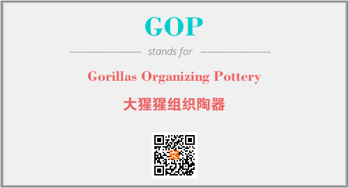 上述内容是“Gorillas Organizing Pottery”作为“GOP”的缩写,解释为“大猩猩组织陶器”时的信息,以及英文缩略词GOP所代表的英文单词,其对应的中文拼音、详细解释以及在英文中的流行度和相关分类、应用领域及应用示例等。