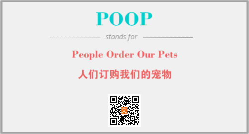 以上为People Order Our Pets英文缩略词POOP的中文解释,以及该英文缩写在英语的流行度、分类和应用领域方面的信息。