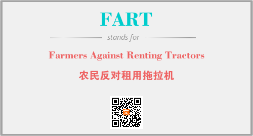 上述内容是“Farmers Against Renting Tractors”作为“FART”的缩写,解释为“农民反对租用拖拉机”时的信息,以及英文缩略词FART所代表的英文单词,其对应的中文拼音、详细解释以及在英文中的流行度和相关分类、应用领域及应用示例等。