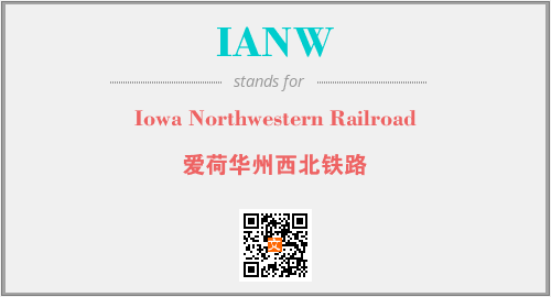 英文缩略词“IANW”经常作为“Iowa Northwestern Railroad”的英文缩写来使用,中文表示:“爱荷华州西北铁路”。本文将详细介绍英文缩写词IANW所代表英文单词,其对应的中文拼音、详细解释以及在英语中的流行度。此外,还有关于缩略词IANW的分类、应用领域及相关应用示例等。
