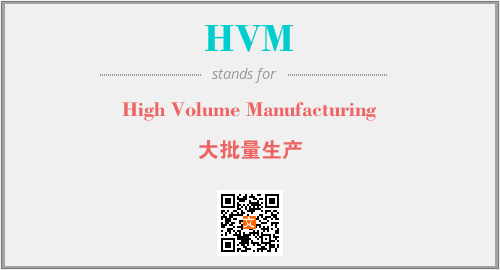 英文缩略词“HVM”经常作为“High Volume Manufacturing”的英文缩写来使用,中文表示:“大批量生产”。本文将详细介绍英文缩写词HVM所代表英文单词,其对应的中文拼音、详细解释以及在英语中的流行度。此外,还有关于缩略词HVM的分类、应用领域及相关应用示例等。