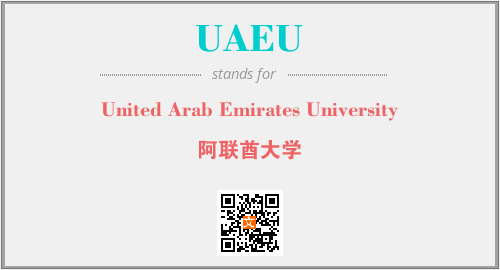 英文缩略词“UAEU”经常作为“United Arab Emirates University”的英文缩写来使用,中文表示:“阿联酋大学”。本文将详细介绍英文缩写词UAEU所代表英文单词,其对应的中文拼音、详细解释以及在英语中的流行度。此外,还有关于缩略词UAEU的分类、应用领域及相关应用示例等。