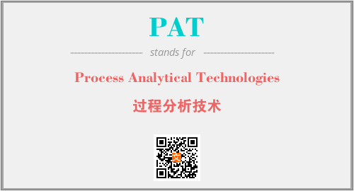 上述内容是“Process Analytical Technologies”作为“PAT”的缩写,解释为“过程分析技术”时的信息,以及英文缩略词PAT所代表的英文单词,其对应的中文拼音、详细解释以及在英文中的流行度和相关分类、应用领域及应用示例等。