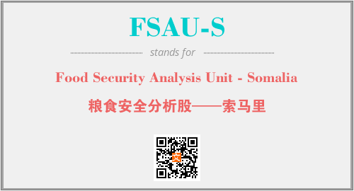 上述内容是“Food Security Analysis Unit - Somalia”作为“FSAU-S”的缩写,解释为“粮食安全分析股——索马里”时的信息,以及英文缩略词FSAU-S所代表的英文单词,其对应的中文拼音、详细解释以及在英文中的流行度和相关分类、应用领域及应用示例等。