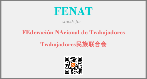 上述内容是“FEderación NAcional de Trabajadores”作为“FENAT”的缩写,解释为“Trabajadores民族联合会”时的信息,以及英文缩略词FENAT所代表的英文单词,其对应的中文拼音、详细解释以及在英文中的流行度和相关分类、应用领域及应用示例等。