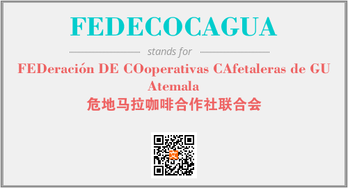 英文缩略词“FEDECOCAGUA”经常作为“FEDeración DE COoperativas CAfetaleras de GUAtemala”的英文缩写来使用,中文表示:“危地马拉咖啡合作社联合会”。本文将详细介绍英文缩写词FEDECOCAGUA所代表英文单词,其对应的中文拼音、详细解释以及在英语中的流行度。此外,还有关于缩略词FEDECOCAGUA的分类、应用领域及相关应用示例等。
