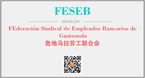 上述内容是“FEderación Sindical de Empleados Bancarios de Guatemala”作为“FESEB”的缩写,解释为“危地马拉劳工联合会”时的信息,以及英文缩略词FESEB所代表的英文单词,其对应的中文拼音、详细解释以及在英文中的流行度和相关分类、应用领域及应用示例等。