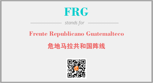 上述内容是“Frente Republicano Guatemalteco”作为“FRG”的缩写,解释为“危地马拉共和国阵线”时的信息,以及英文缩略词FRG所代表的英文单词,其对应的中文拼音、详细解释以及在英文中的流行度和相关分类、应用领域及应用示例等。