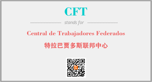 上述内容是“Central de Trabajadores Federados”作为“CFT”的缩写,解释为“特拉巴贾多斯联邦中心”时的信息,以及英文缩略词CFT所代表的英文单词,其对应的中文拼音、详细解释以及在英文中的流行度和相关分类、应用领域及应用示例等。