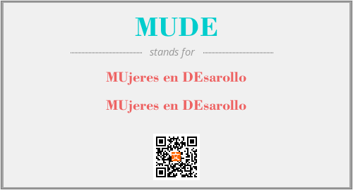 英文缩略词“MUDE”经常作为“MUjeres en DEsarollo”的英文缩写来使用,中文表示:“MUjeres en DEsarollo”。本文将详细介绍英文缩写词MUDE所代表英文单词,其对应的中文拼音、详细解释以及在英语中的流行度。此外,还有关于缩略词MUDE的分类、应用领域及相关应用示例等。