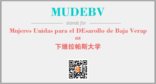 上述内容是“Mujeres Unidas para el DEsarollo de Baja Verapaz”作为“MUDEBV”的缩写,解释为“下维拉帕斯大学”时的信息,以及英文缩略词MUDEBV所代表的英文单词,其对应的中文拼音、详细解释以及在英文中的流行度和相关分类、应用领域及应用示例等。