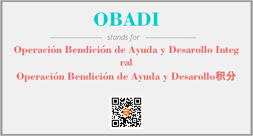 上述内容是“Operación Bendición de Ayuda y Desarollo Integral”作为“OBADI”的缩写,解释为“Operación Bendición de Ayuda y Desarollo积分”时的信息,以及英文缩略词OBADI所代表的英文单词,其对应的中文拼音、详细解释以及在英文中的流行度和相关分类、应用领域及应用示例等。
