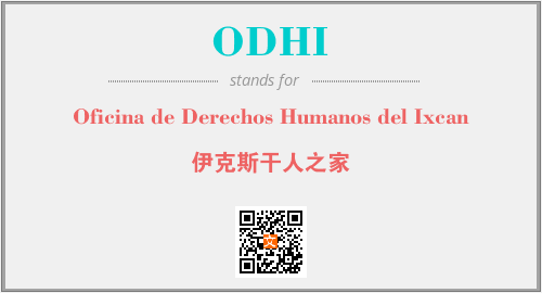 英文缩略词“ODHI”经常作为“Oficina de Derechos Humanos del Ixcan”的英文缩写来使用,中文表示:“伊克斯干人之家”。本文将详细介绍英文缩写词ODHI所代表英文单词,其对应的中文拼音、详细解释以及在英语中的流行度。此外,还有关于缩略词ODHI的分类、应用领域及相关应用示例等。
