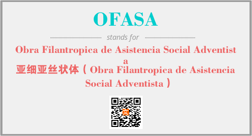 上述内容是“Obra Filantropica de Asistencia Social Adventista”作为“OFASA”的缩写,解释为“亚细亚丝状体(Obra Filantropica de Asistencia Social Adventista)”时的信息,以及英文缩略词OFASA所代表的英文单词,其对应的中文拼音、详细解释以及在英文中的流行度和相关分类、应用领域及应用示例等。