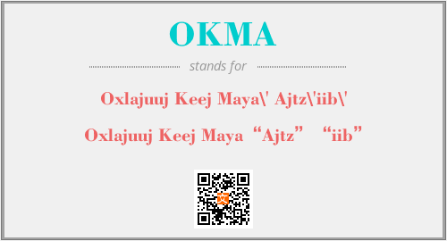 以上为Oxlajuuj Keej Maya\' Ajtz\'iib\'英文缩略词OKMA的中文解释,以及该英文缩写在英语的流行度、分类和应用领域方面的信息。