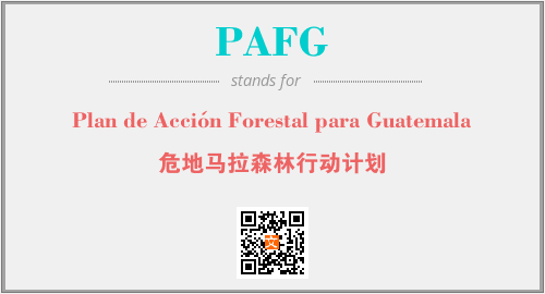 上述内容是“Plan de Acción Forestal para Guatemala”作为“PAFG”的缩写,解释为“危地马拉森林行动计划”时的信息,以及英文缩略词PAFG所代表的英文单词,其对应的中文拼音、详细解释以及在英文中的流行度和相关分类、应用领域及应用示例等。
