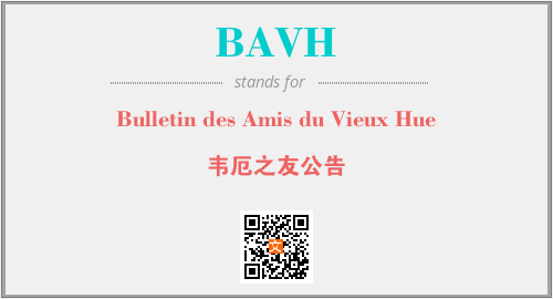 上述内容是“Bulletin des Amis du Vieux Hue”作为“BAVH”的缩写,解释为“韦厄之友公告”时的信息,以及英文缩略词BAVH所代表的英文单词,其对应的中文拼音、详细解释以及在英文中的流行度和相关分类、应用领域及应用示例等。