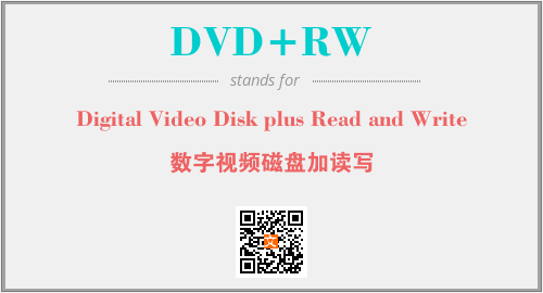 英文缩略词“DVD+RW”经常作为“Digital Video Disk plus Read and Write”的英文缩写来使用,中文表示:“数字视频磁盘加读写”。本文将详细介绍英文缩写词DVD+RW所代表英文单词,其对应的中文拼音、详细解释以及在英语中的流行度。此外,还有关于缩略词DVD+RW的分类、应用领域及相关应用示例等。