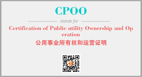上述内容是“Certification of Public utility Ownership and Operation”作为“CPOO”的缩写,解释为“公用事业所有权和运营证明”时的信息,以及英文缩略词CPOO所代表的英文单词,其对应的中文拼音、详细解释以及在英文中的流行度和相关分类、应用领域及应用示例等。