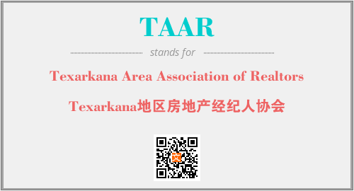 上述内容是“Texarkana Area Association of Realtors”作为“TAAR”的缩写,解释为“Texarkana地区房地产经纪人协会”时的信息,以及英文缩略词TAAR所代表的英文单词,其对应的中文拼音、详细解释以及在英文中的流行度和相关分类、应用领域及应用示例等。