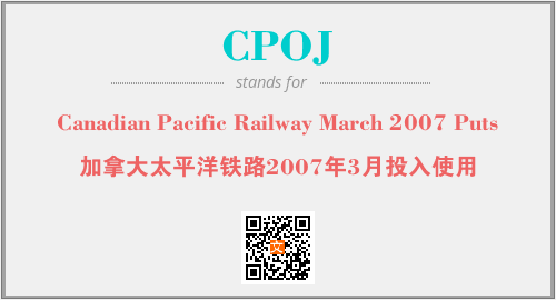 上述内容是“Canadian Pacific Railway March 2007 Puts”作为“CPOJ”的缩写,解释为“加拿大太平洋铁路2007年3月投入使用”时的信息,以及英文缩略词CPOJ所代表的英文单词,其对应的中文拼音、详细解释以及在英文中的流行度和相关分类、应用领域及应用示例等。