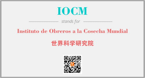 上述内容是“Instituto de Obreros a la Cosecha Mundial”作为“IOCM”的缩写,解释为“世界科学研究院”时的信息,以及英文缩略词IOCM所代表的英文单词,其对应的中文拼音、详细解释以及在英文中的流行度和相关分类、应用领域及应用示例等。