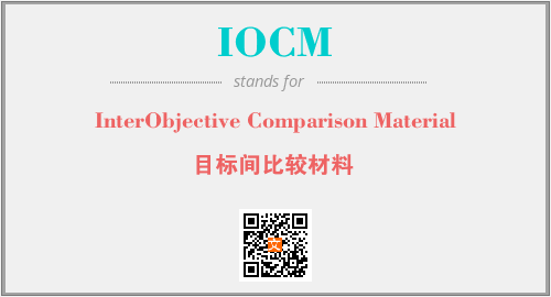 上述内容是“InterObjective Comparison Material”作为“IOCM”的缩写,解释为“目标间比较材料”时的信息,以及英文缩略词IOCM所代表的英文单词,其对应的中文拼音、详细解释以及在英文中的流行度和相关分类、应用领域及应用示例等。