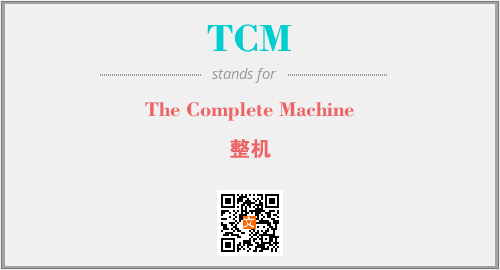 英文缩略词“TCM”经常作为“The Complete Machine”的英文缩写来使用,中文表示:“整机”。本文将详细介绍英文缩写词TCM所代表英文单词,其对应的中文拼音、详细解释以及在英语中的流行度。此外,还有关于缩略词TCM的分类、应用领域及相关应用示例等。