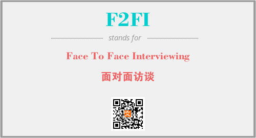 英文缩略词“F2FI”经常作为“Face To Face Interviewing”的英文缩写来使用,中文表示:“面对面访谈”。本文将详细介绍英文缩写词F2FI所代表英文单词,其对应的中文拼音、详细解释以及在英语中的流行度。此外,还有关于缩略词F2FI的分类、应用领域及相关应用示例等。