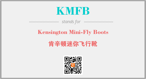 上述内容是“Kensington Mini-Fly Boots”作为“KMFB”的缩写,解释为“肯辛顿迷你飞行靴”时的信息,以及英文缩略词KMFB所代表的英文单词,其对应的中文拼音、详细解释以及在英文中的流行度和相关分类、应用领域及应用示例等。