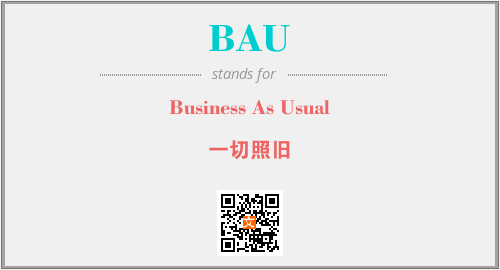 英文缩略词“BAU”经常作为“Business As Usual”的英文缩写来使用,中文表示:“一切照旧”。本文将详细介绍英文缩写词BAU所代表英文单词,其对应的中文拼音、详细解释以及在英语中的流行度。此外,还有关于缩略词BAU的分类、应用领域及相关应用示例等。