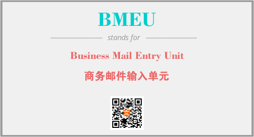 英文缩略词“BMEU”经常作为“Business Mail Entry Unit”的英文缩写来使用,中文表示:“商务邮件输入单元”。本文将详细介绍英文缩写词BMEU所代表英文单词,其对应的中文拼音、详细解释以及在英语中的流行度。此外,还有关于缩略词BMEU的分类、应用领域及相关应用示例等。