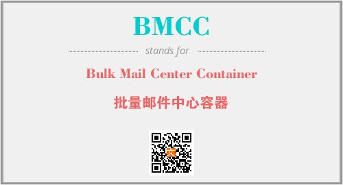 英文缩略词“BMCC”经常作为“Bulk Mail Center Container”的英文缩写来使用,中文表示:“批量邮件中心容器”。本文将详细介绍英文缩写词BMCC所代表英文单词,其对应的中文拼音、详细解释以及在英语中的流行度。此外,还有关于缩略词BMCC的分类、应用领域及相关应用示例等。