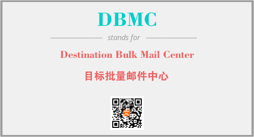 英文缩略词“DBMC”经常作为“Destination Bulk Mail Center”的英文缩写来使用,中文表示:“目标批量邮件中心”。本文将详细介绍英文缩写词DBMC所代表英文单词,其对应的中文拼音、详细解释以及在英语中的流行度。此外,还有关于缩略词DBMC的分类、应用领域及相关应用示例等。