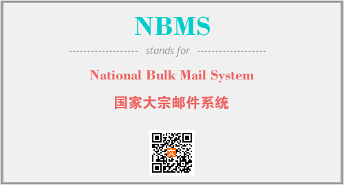 英文缩略词“NBMS”经常作为“National Bulk Mail System”的英文缩写来使用,中文表示:“国家大宗邮件系统”。本文将详细介绍英文缩写词NBMS所代表英文单词,其对应的中文拼音、详细解释以及在英语中的流行度。此外,还有关于缩略词NBMS的分类、应用领域及相关应用示例等。