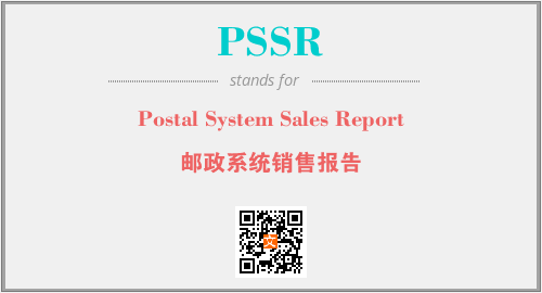 上述内容是“Postal System Sales Report”作为“PSSR”的缩写,解释为“邮政系统销售报告”时的信息,以及英文缩略词PSSR所代表的英文单词,其对应的中文拼音、详细解释以及在英文中的流行度和相关分类、应用领域及应用示例等。