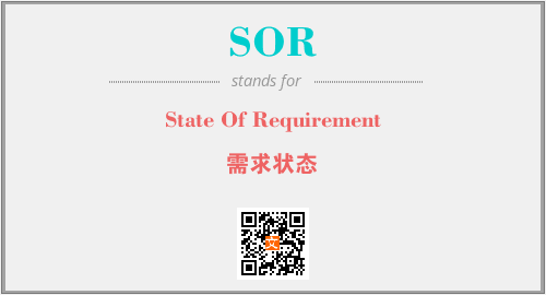 上述内容是“State Of Requirement”作为“SOR”的缩写,解释为“需求状态”时的信息,以及英文缩略词SOR所代表的英文单词,其对应的中文拼音、详细解释以及在英文中的流行度和相关分类、应用领域及应用示例等。