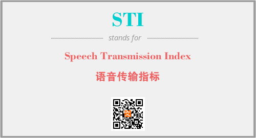 英文缩略词“STI”经常作为“Speech Transmission Index”的英文缩写来使用,中文表示:“语音传输指标”。本文将详细介绍英文缩写词STI所代表英文单词,其对应的中文拼音、详细解释以及在英语中的流行度。此外,还有关于缩略词STI的分类、应用领域及相关应用示例等。