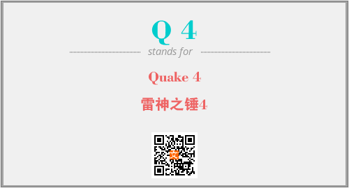 英文缩略词“Q 4”经常作为“Quake 4”的英文缩写来使用,中文表示:“雷神之锤4”。本文将详细介绍英文缩写词Q 4所代表英文单词,其对应的中文拼音、详细解释以及在英语中的流行度。此外,还有关于缩略词Q 4的分类、应用领域及相关应用示例等。