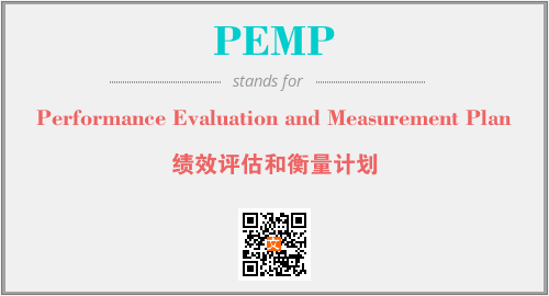 英文缩略词“PEMP”经常作为“Performance Evaluation and Measurement Plan”的英文缩写来使用,中文表示:“绩效评估和衡量计划”。本文将详细介绍英文缩写词PEMP所代表英文单词,其对应的中文拼音、详细解释以及在英语中的流行度。此外,还有关于缩略词PEMP的分类、应用领域及相关应用示例等。