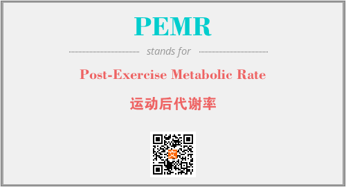 上述内容是“Post-Exercise Metabolic Rate”作为“PEMR”的缩写,解释为“运动后代谢率”时的信息,以及英文缩略词PEMR所代表的英文单词,其对应的中文拼音、详细解释以及在英文中的流行度和相关分类、应用领域及应用示例等。
