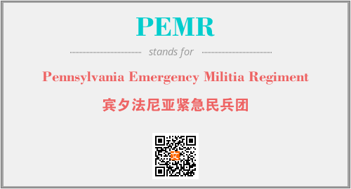 以上为Pennsylvania Emergency Militia Regiment英文缩略词PEMR的中文解释,以及该英文缩写在英语的流行度、分类和应用领域方面的信息。