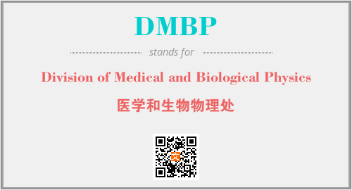 上述内容是“Division of Medical and Biological Physics”作为“DMBP”的缩写,解释为“医学和生物物理处”时的信息,以及英文缩略词DMBP所代表的英文单词,其对应的中文拼音、详细解释以及在英文中的流行度和相关分类、应用领域及应用示例等。