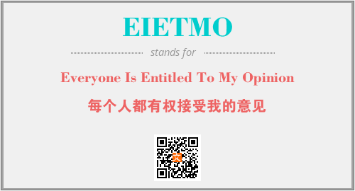 以上为Everyone Is Entitled To My Opinion英文缩略词EIETMO的中文解释,以及该英文缩写在英语的流行度、分类和应用领域方面的信息。