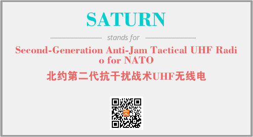 英文缩略词“SATURN”经常作为“Second-Generation Anti-Jam Tactical UHF Radio for NATO”的英文缩写来使用,中文表示:“北约第二代抗干扰战术UHF无线电”。本文将详细介绍英文缩写词SATURN所代表英文单词,其对应的中文拼音、详细解释以及在英语中的流行度。此外,还有关于缩略词SATURN的分类、应用领域及相关应用示例等。