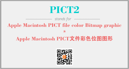 上述内容是“Apple Macintosh PICT file color Bitmap graphics”作为“PICT2”的缩写,解释为“Apple Macintosh PICT文件彩色位图图形”时的信息,以及英文缩略词PICT2所代表的英文单词,其对应的中文拼音、详细解释以及在英文中的流行度和相关分类、应用领域及应用示例等。