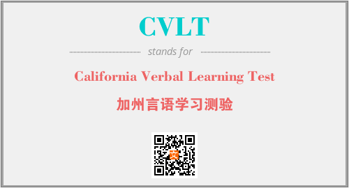 英文缩略词“CVLT”经常作为“California Verbal Learning Test”的英文缩写来使用,中文表示:“加州言语学习测验”。本文将详细介绍英文缩写词CVLT所代表英文单词,其对应的中文拼音、详细解释以及在英语中的流行度。此外,还有关于缩略词CVLT的分类、应用领域及相关应用示例等。