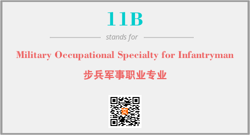 英文缩略词“11B”经常作为“Military Occupational Specialty for Infantryman”的英文缩写来使用,中文表示:“步兵军事职业专业”。本文将详细介绍英文缩写词11B所代表英文单词,其对应的中文拼音、详细解释以及在英语中的流行度。此外,还有关于缩略词11B的分类、应用领域及相关应用示例等。