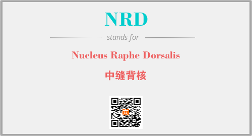 上述内容是“Nucleus Raphe Dorsalis”作为“NRD”的缩写,解释为“中缝背核”时的信息,以及英文缩略词NRD所代表的英文单词,其对应的中文拼音、详细解释以及在英文中的流行度和相关分类、应用领域及应用示例等。