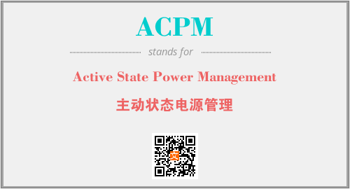 英文缩略词“ACPM”经常作为“Active State Power Management”的英文缩写来使用,中文表示:“主动状态电源管理”。本文将详细介绍英文缩写词ACPM所代表英文单词,其对应的中文拼音、详细解释以及在英语中的流行度。此外,还有关于缩略词ACPM的分类、应用领域及相关应用示例等。